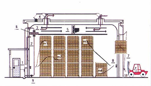 干燥窯是以蒸汽為熱源,濕空氣為介質(zhì),通過控制干燥介質(zhì)的參數(shù)科學(xué)的對木材進(jìn)行干燥處理。采用蒸汽加熱可實現(xiàn)的窯內(nèi)溫、濕度控制從而獲得干燥質(zhì)量好、含水率均勻的木材干燥產(chǎn)品。
